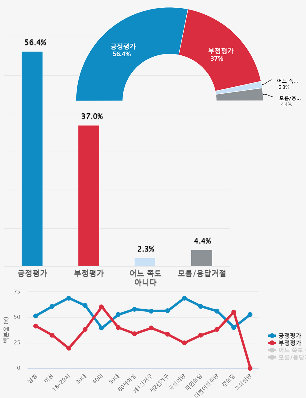 ¡Þ ±àÁ¤Æò°¡ 56.4%, ºÎÁ¤Æò°¡¿¡ 19.4% Â÷ÀÌ·Î ¾Õ¼