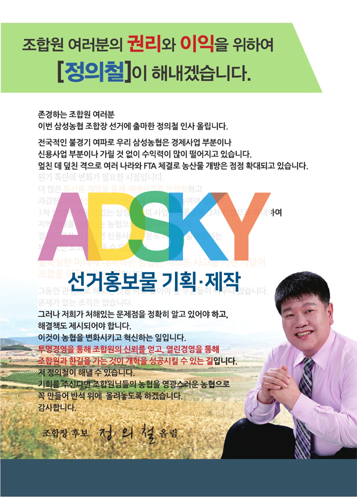 Á¤ÀÇö Á¶ÇÕÀå Èĺ¸ ¼±°ÅÈ«º¸¹° (»ï¼º³ó¾÷ Çùµ¿Á¶ÇÕ)